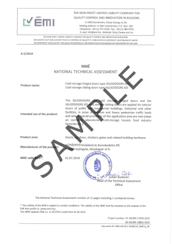The IglooDoors® doors are equipped with a valid National Technical Assessment supported by accredited tests from ÉMI, feature opening mechanisms compliant with the EN 179 standard for use in escape routes, and are protected by a Registered Community Design.